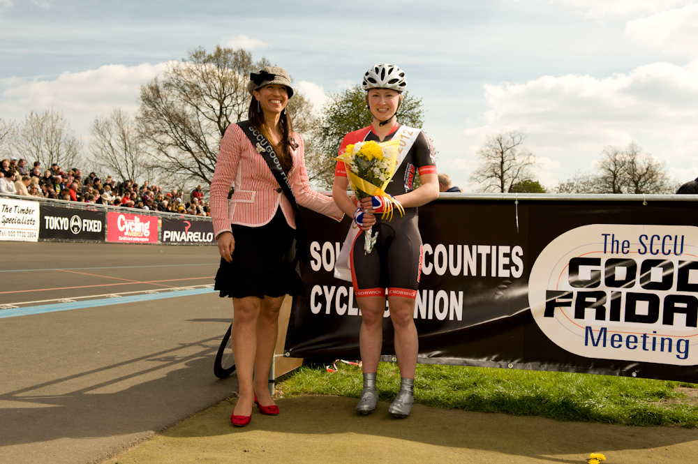 Victoria Williamson won the Womens Keirin at the Herne Hill Good Friday Meet, in her new VC Norwich kit. Mark Williamson her Dad writes… ” wins her first race first time she wears the kit , could be a good omen….” Well Done Victoria, let’s hope it’s the first of many!