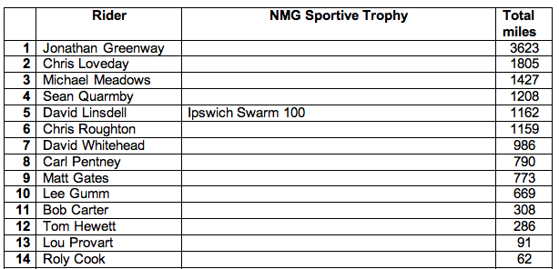 Now I know a lot of people might think the fat lady is approaching the microphone, and it’s all over bar the shouting … but to have only one claim for mileage since the first weekend of the month is a bit thin. It sees David leap one place up the chart. Yes we know that mileage monster Jonathan Greenway is well on the way to winning (and bringing the club more kudos, more to come on that in the October newsletter) but come on, let’s keep the podium fight going. Claims for mileage to newseditor@vcnorwich.co.uk for participation in organised, measured events, but you must have worn club kit to do so (and the team has been examining the pictures from the CSUK Pinewood event). You know who you are …