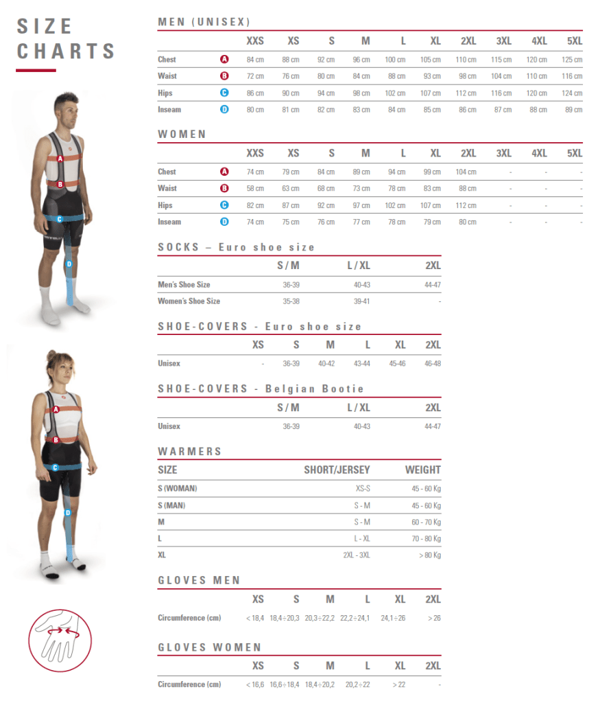 Castelli clothing has a typical Italian cut, which is quite small, so you may need to order an size larger than normal. For some idea, see the Sizing Guide below. Please speak to Clothing Secretary Clive Rayner or other members if you are unsure which size to order.
