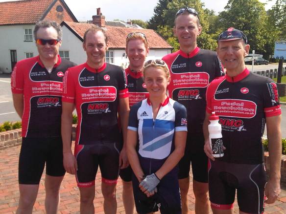 Then on Sunday we have our own Emma Pooley riding with Lizzie Armistead, Lucy Martin and 2008 gold medallist Nicole Cooke in the women’s event. Emma joined the VCN training ride last Saturday whilst she was in Norwich before heading down to the GB holding camp. Let’s hope a Norfolk ride was the just the setup she needs for Sunday, although her eyes will also be on the time trial in a few days time.